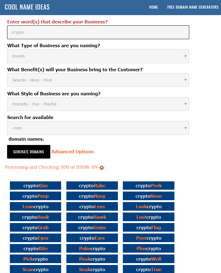 Get Crypto Names Generator Background. This is a simple tool that generates thousands of different funny cryptocurrency project names, loaded with buzzwords. Create unlimited names with 28 name generators instant domain check